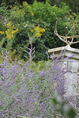 Oh, I love the light and mildness in the air, the glimpse of the sundial. Indian Summer awaits.