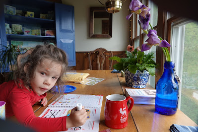One day a week? Josie keeps you hopping I see. We have granddaughter #2 here one day a week but she's in pre-K so we pick her up at 11. She is a non-stop talker. e.g. "Nana, you know what?" And she goes on from there. She's also into silly knock knock jokes.